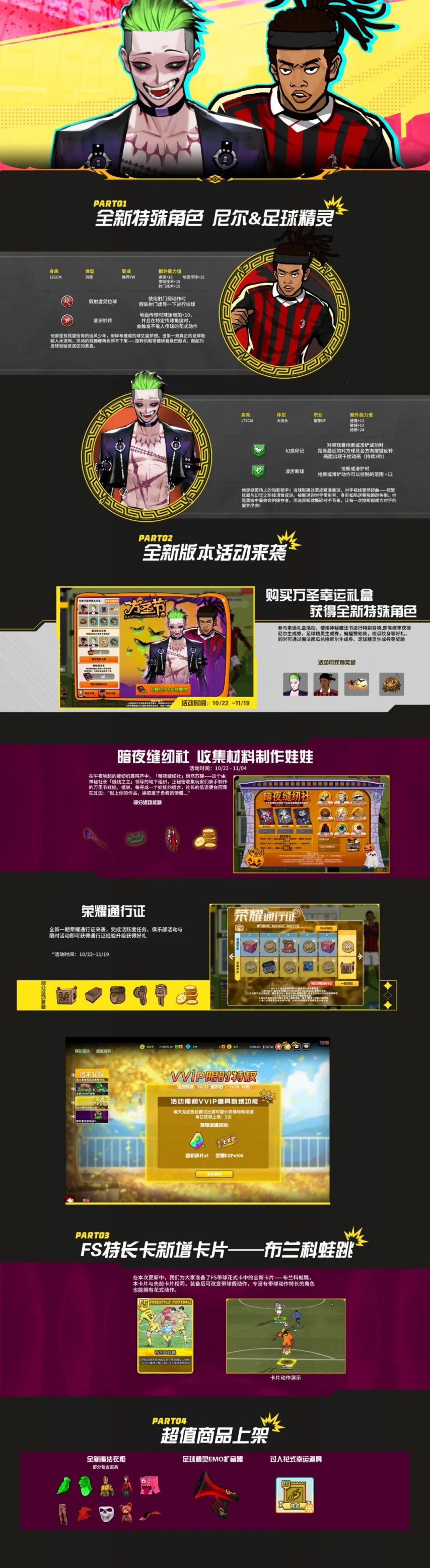 免费足球经典服务器将于10月22日更新!新花式动作“布兰科青蛙跳”现已推出!新特殊角色足球精灵尼尔登场!精彩纷呈的万圣节主题活动等你来参加!