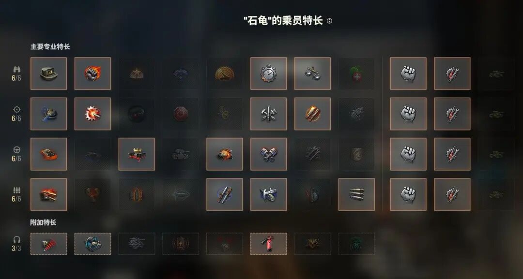 可供参考的乘员技能选择船员技能方面,您可以参考以上方案进行选择。中型坦克的基本技能有兄弟连、修理、应急、快速瞄准、枪法大师等技能。此外,你还可以选择地面行走、机械专家等技能。石龟的基础隐蔽值较差,所以本计划放弃学习隐蔽技能,转而学习徒手格斗、熟悉弹匣控制、火炮调试等技能,这将有助于它发挥自身的火力。