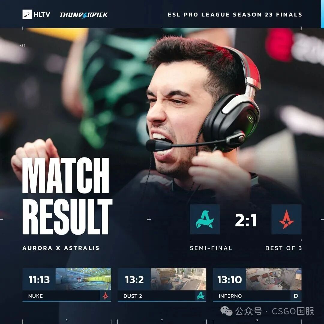 半决赛:Aurora 2-1 Astralis,晋级决赛