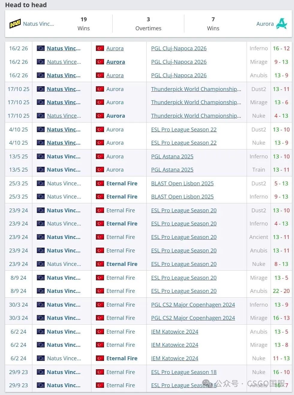 在EPL S20决赛之前,NAVI对永恒之火已经积累了四连胜。在EPL S23决赛之前,NAVI对战Aurora也已经取得了四连胜。