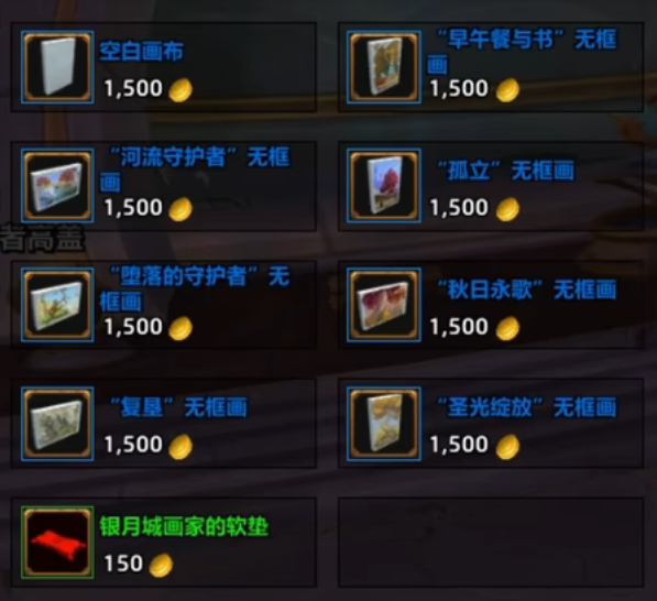 前往银月城NPC海丝特弗拉斯花费1500G购买住宅装饰画。
