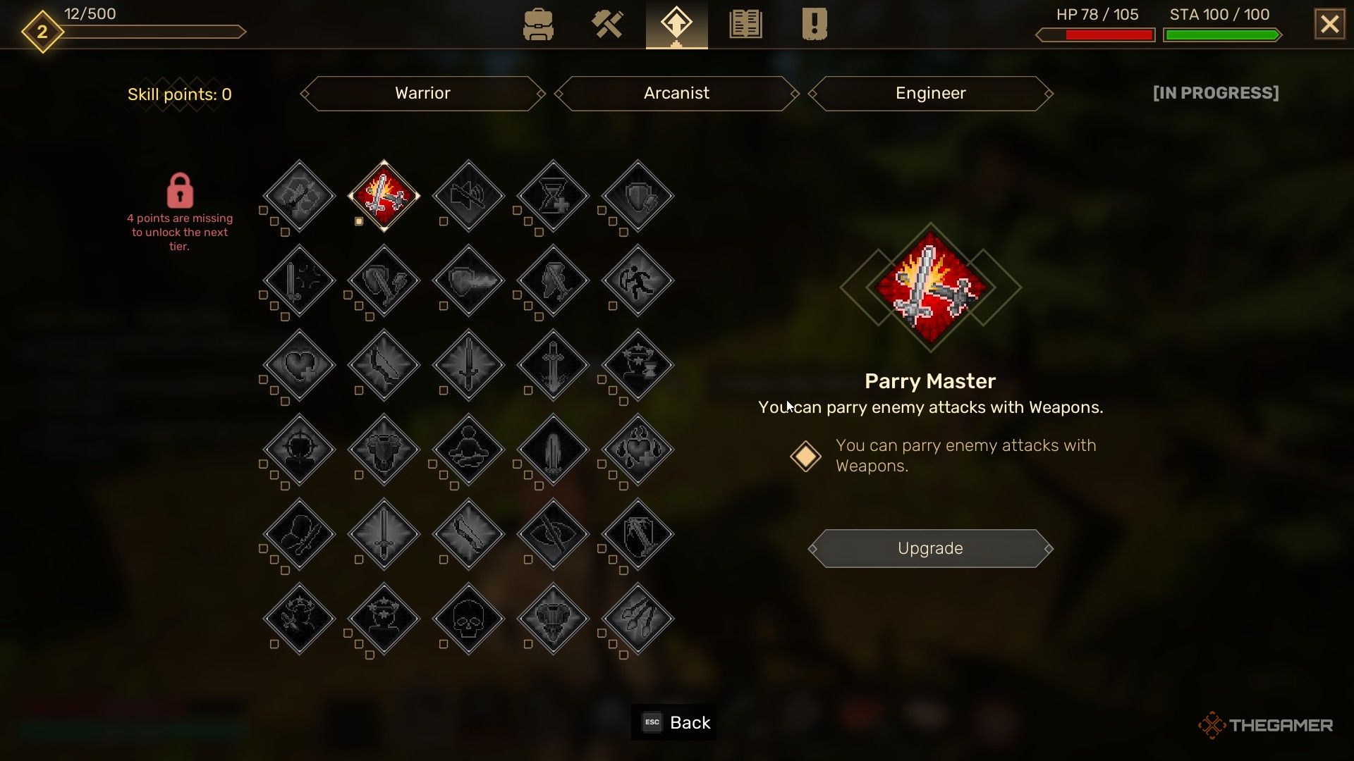 这是因为你在《永风》的每个技能树上都需要解锁渐进的升级层级,但这不会影响你的整体进度。例如,如果您将第一个技能点花在战士树中的技能上,则在分配四个点后,您将看到战士树的下一层解锁,但您仍然需要在奥术树中分配另外五个点。
