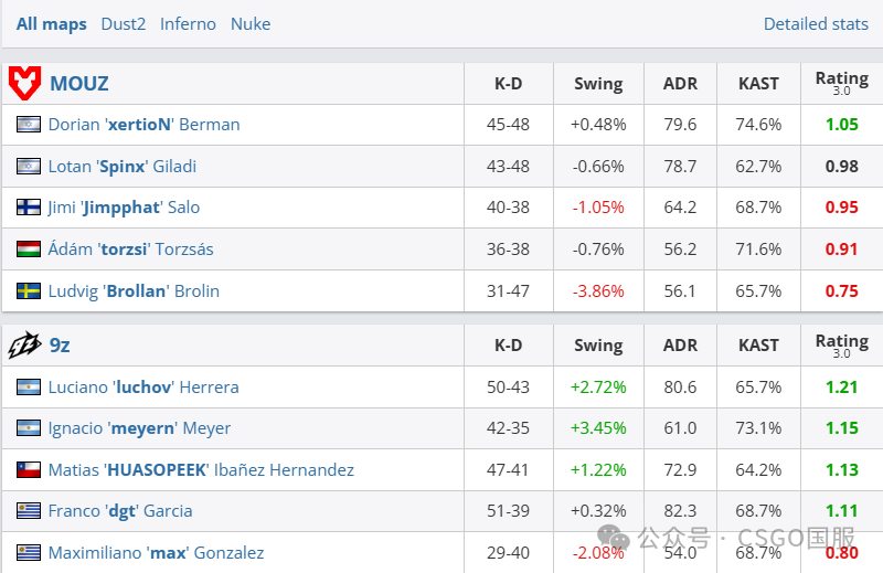 Nuke决胜图上,9z带着上图的气势,全员在线,对劣势攻手发起9-2的进攻狂潮。 MOUZ只追到9分就倒戈投降。最终,dgt在黄室打出双杀结束比赛,完成爆冷。