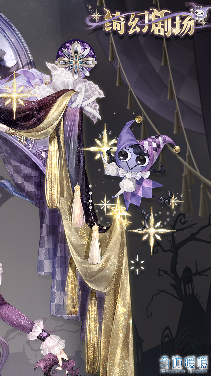 【绮幻剧场】包括正常姿势和特殊姿势,全新妆容《狡猾的陷阱》、方块面饰《愚人的狂欢》、精美可移动摆件《虚假舞台》、《插曲幻境》、《温柔的邀请》。