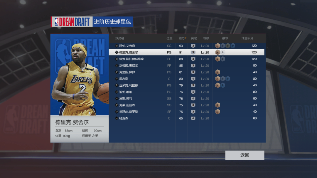 卡槽二进阶历史球星套餐:160星点,主要作用是获得费舍尔和艾弗森,并捆绑雷阿伦和坎比; 03 佩贾后期突破后可以替代克努佩尔。杰梅因·奥尼尔是一名可用的内线球员,但他的触球倾向太高,无法在第四节上场;剩下的其他玩家影响不大。