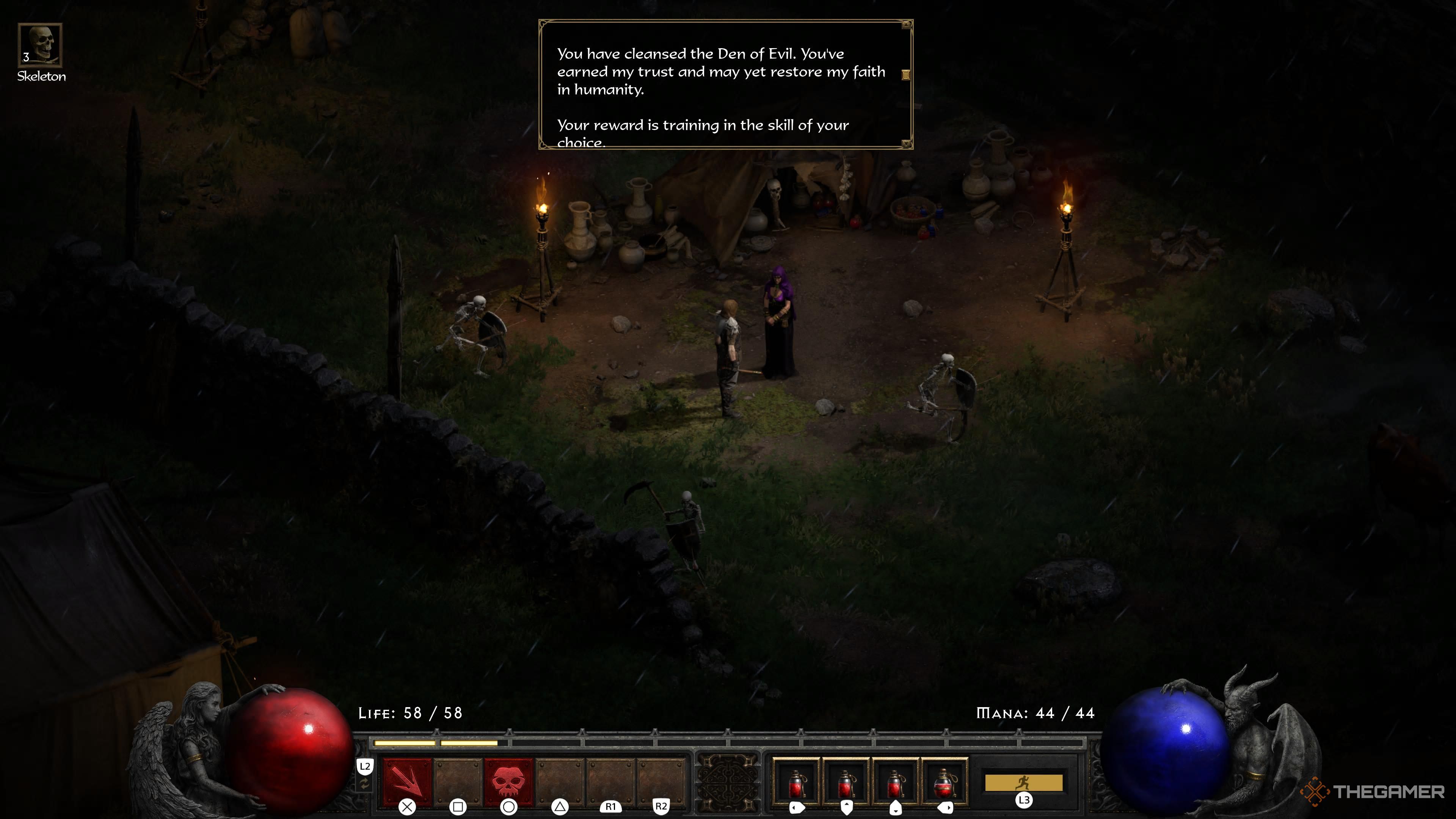 完成地下城后,您将收到一条通知,要求您拨打向阿卡拉报告。使用城镇传送卷轴你可以立即返回营地,你会在第一次见到阿卡拉的地方找到她。