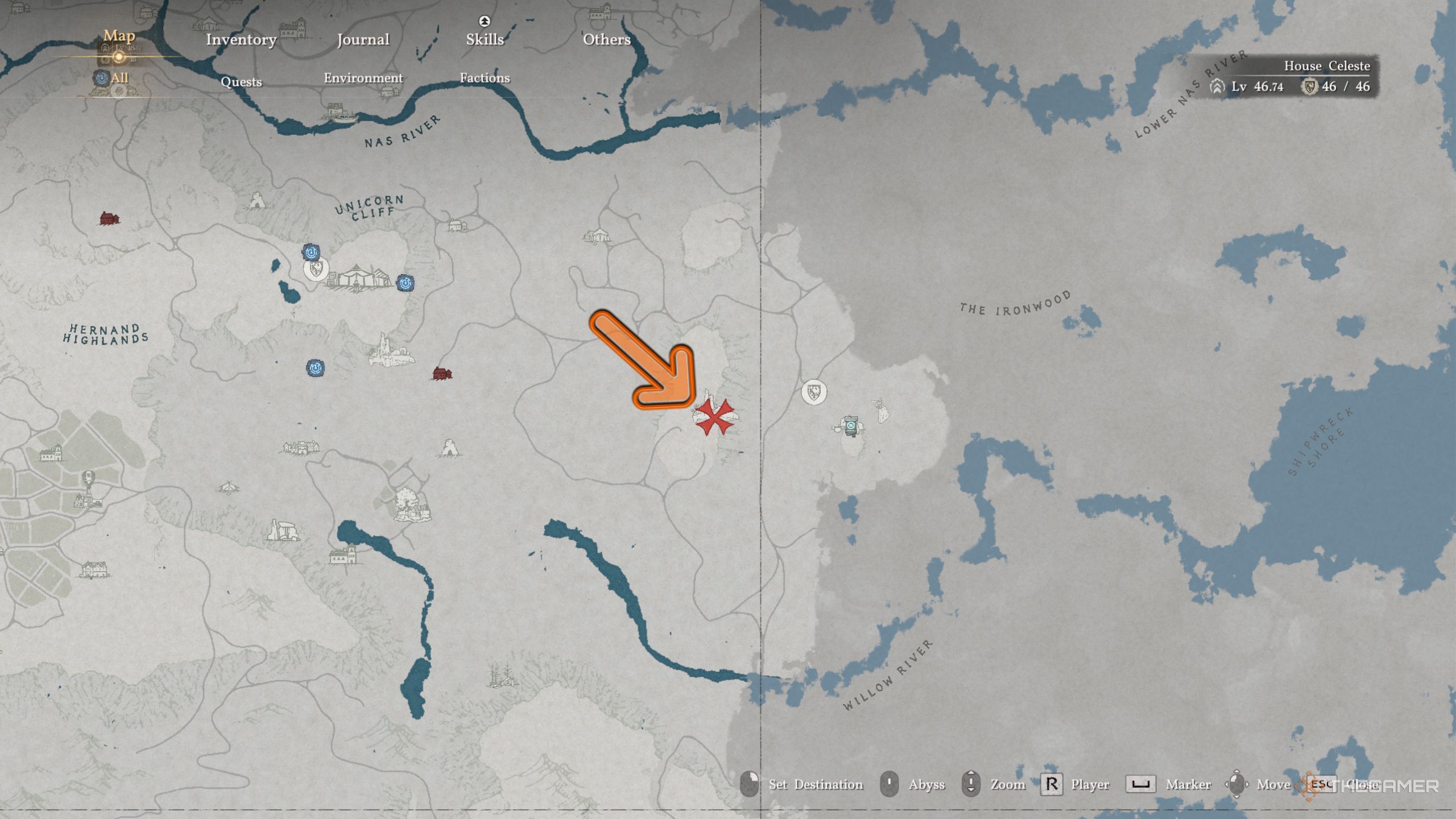 如果你还没有进入《红色沙漠》 主线故事的第五章,那么找到忏悔圣所就没有意义,因为在遇到Ellowin 之前你无法与他们互动。当你接到为她净化这些庇护所的任务后,你可以在赫南德的东侧,主城的东南方看到这座圣所。