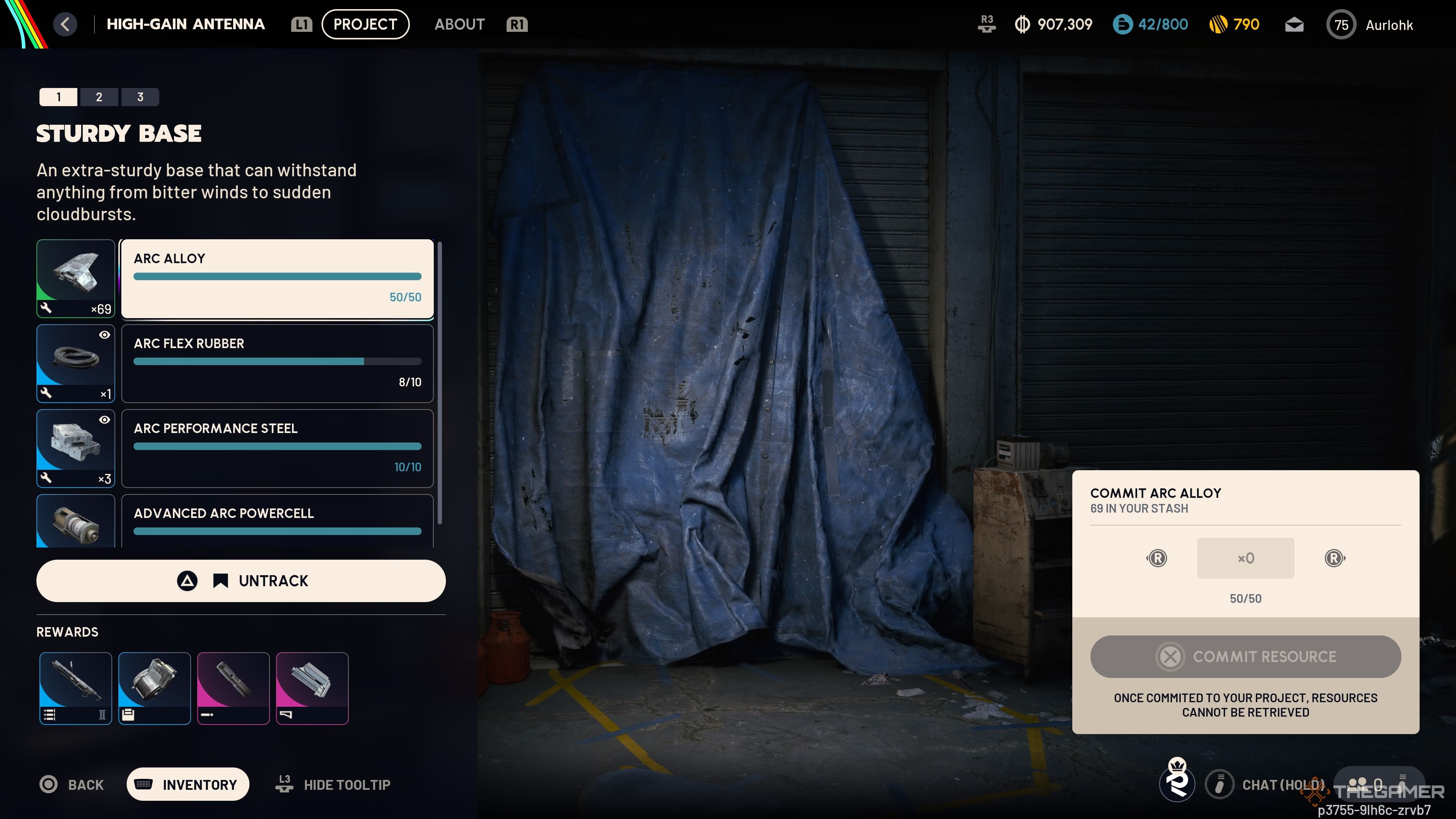 对于该项目的第一步,您将需要四个资源:ARC合金、ARC柔性橡胶、ARC高性能钢和高级ARC动力电池。所有这些都来自ARC 敌人或从ARC信使和ARC探测器掉落。