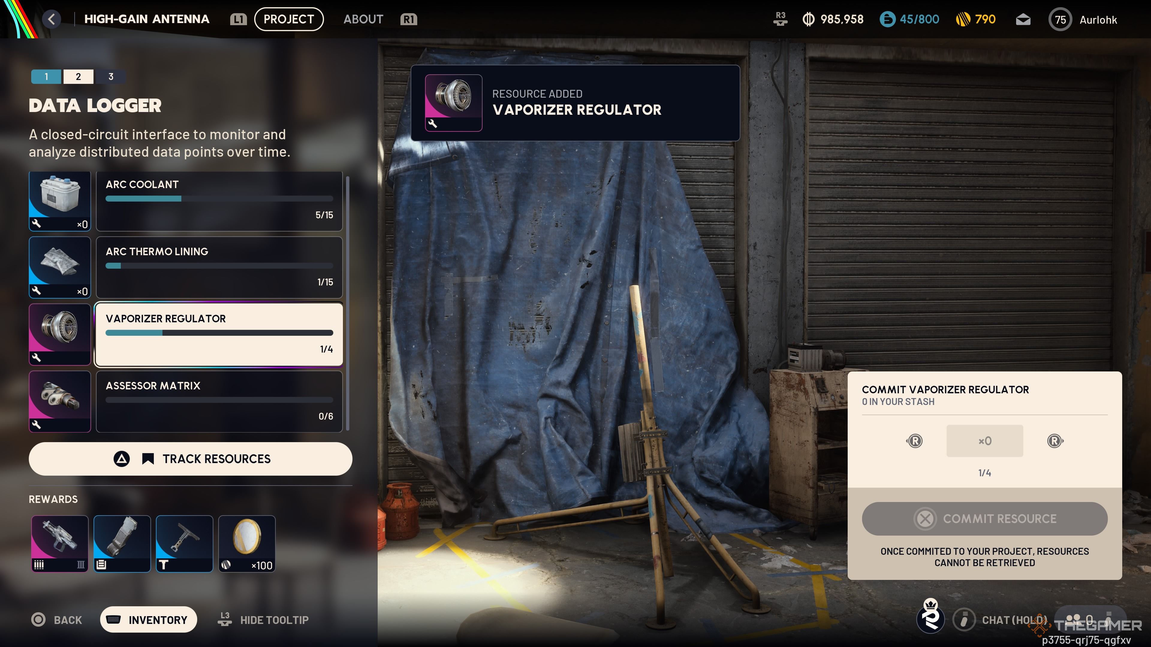 尽可能利用未坠毁的ARC探测器,因为它们有机会给你任何所需的材料,包括汽化器调节器。唯一不会出现在检测器中的是评估器矩阵。