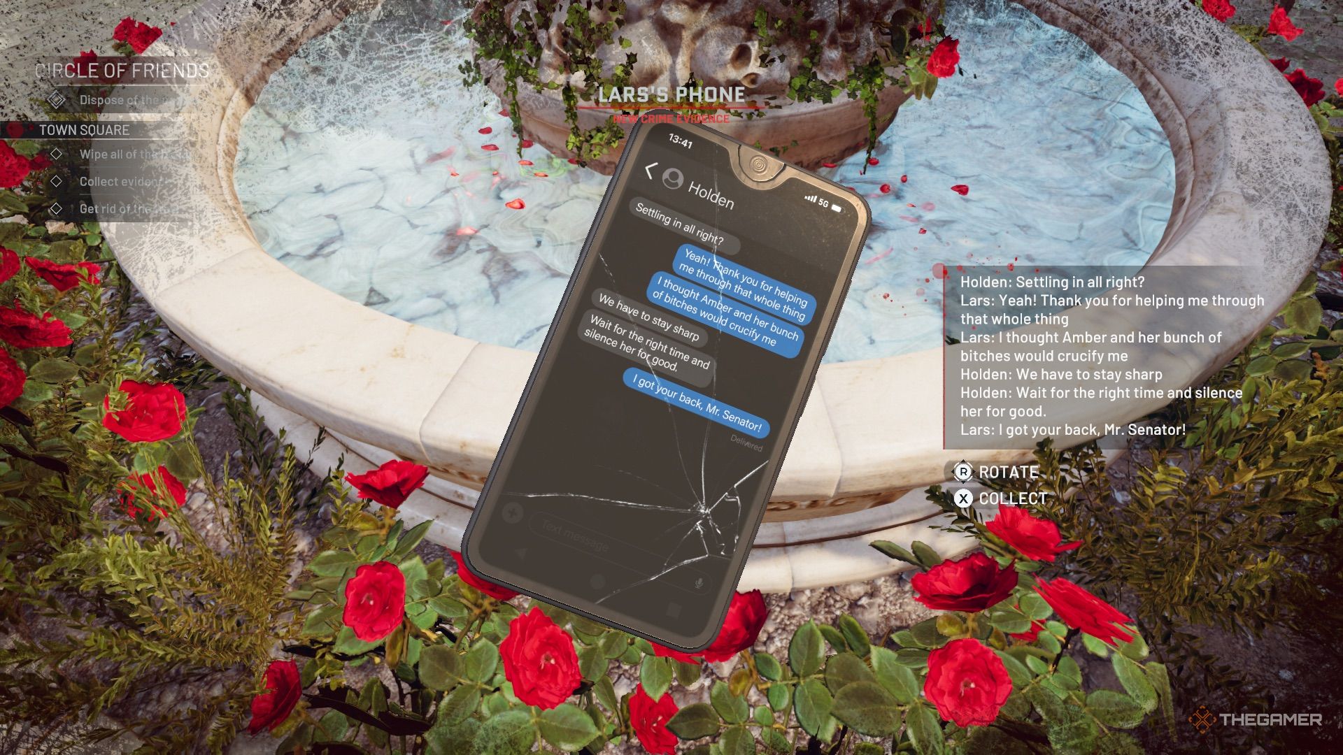 把剩下的家具清理干净,放回原处,从喷泉边拿起手机(证据)。喷泉里还有现金,周围的桌子上还有一些贵重物品。前往该区域尽头的楼梯,边走边清理楼梯,并从墙上取下手里剑。