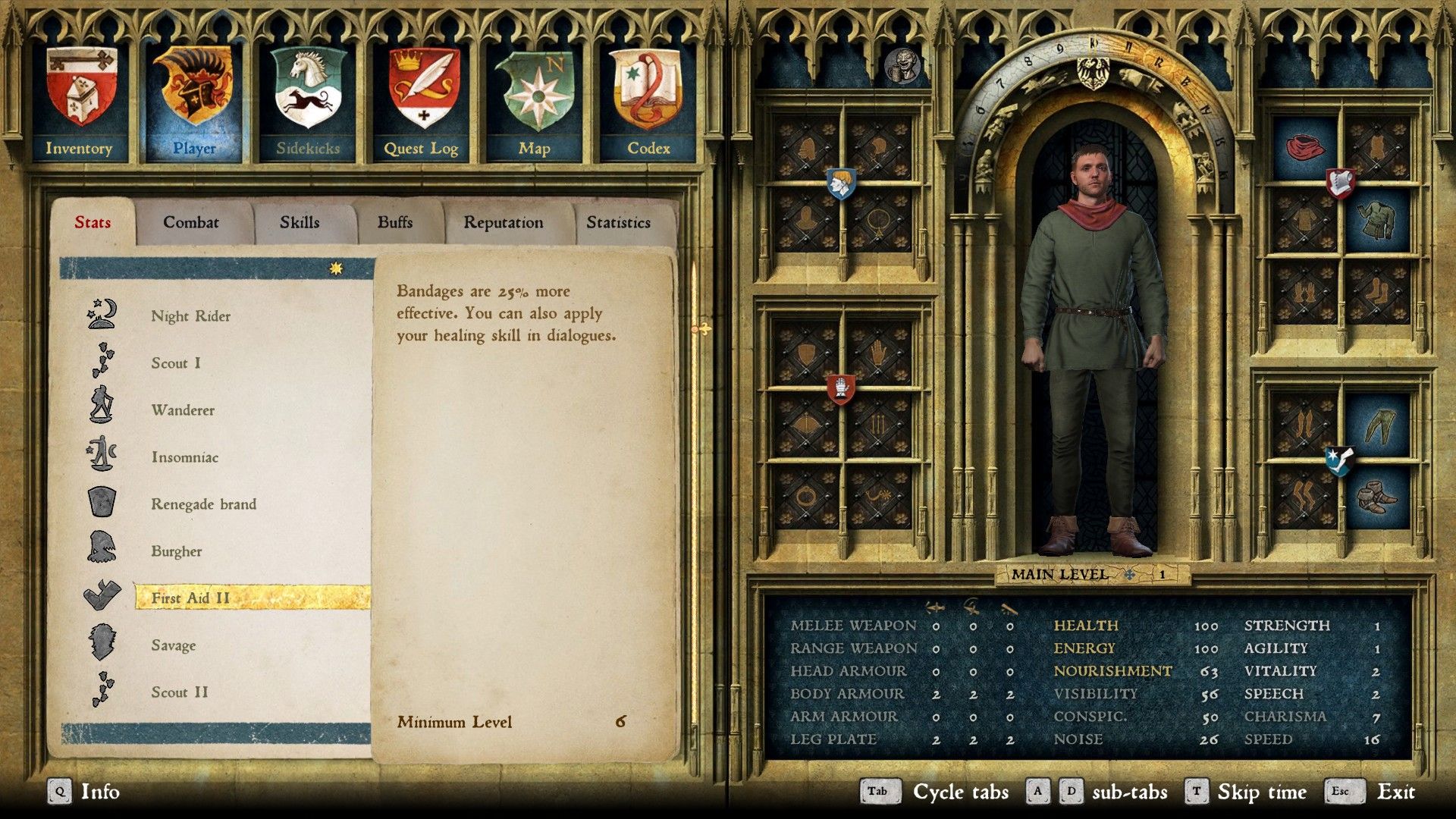 这涵盖了整个急救技能线(I、II 和III),是您可以获得的最重要的技能之一,特别是如果您是游戏新手。请记住,这款游戏既是一款角色扮演游戏,也是一款身临其境的历史模拟器;这里没有治疗咒语。伤口可能很严重,因此治疗变得至关重要。