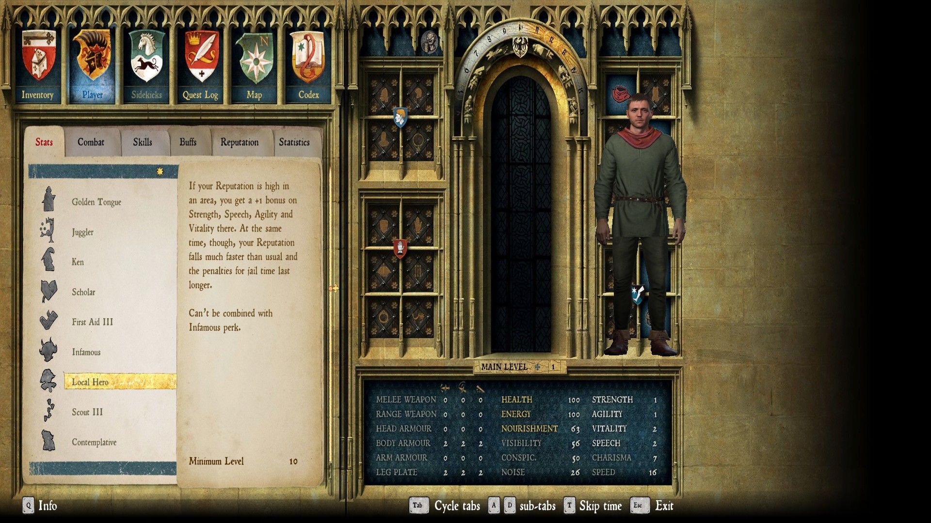 “本地英雄”是另一个第二选择技能,它的反义词是“臭名昭著”。这是另一种根据你的属性提供奖励的技能。在这种情况下,奖金取决于你在镇民中的声誉。