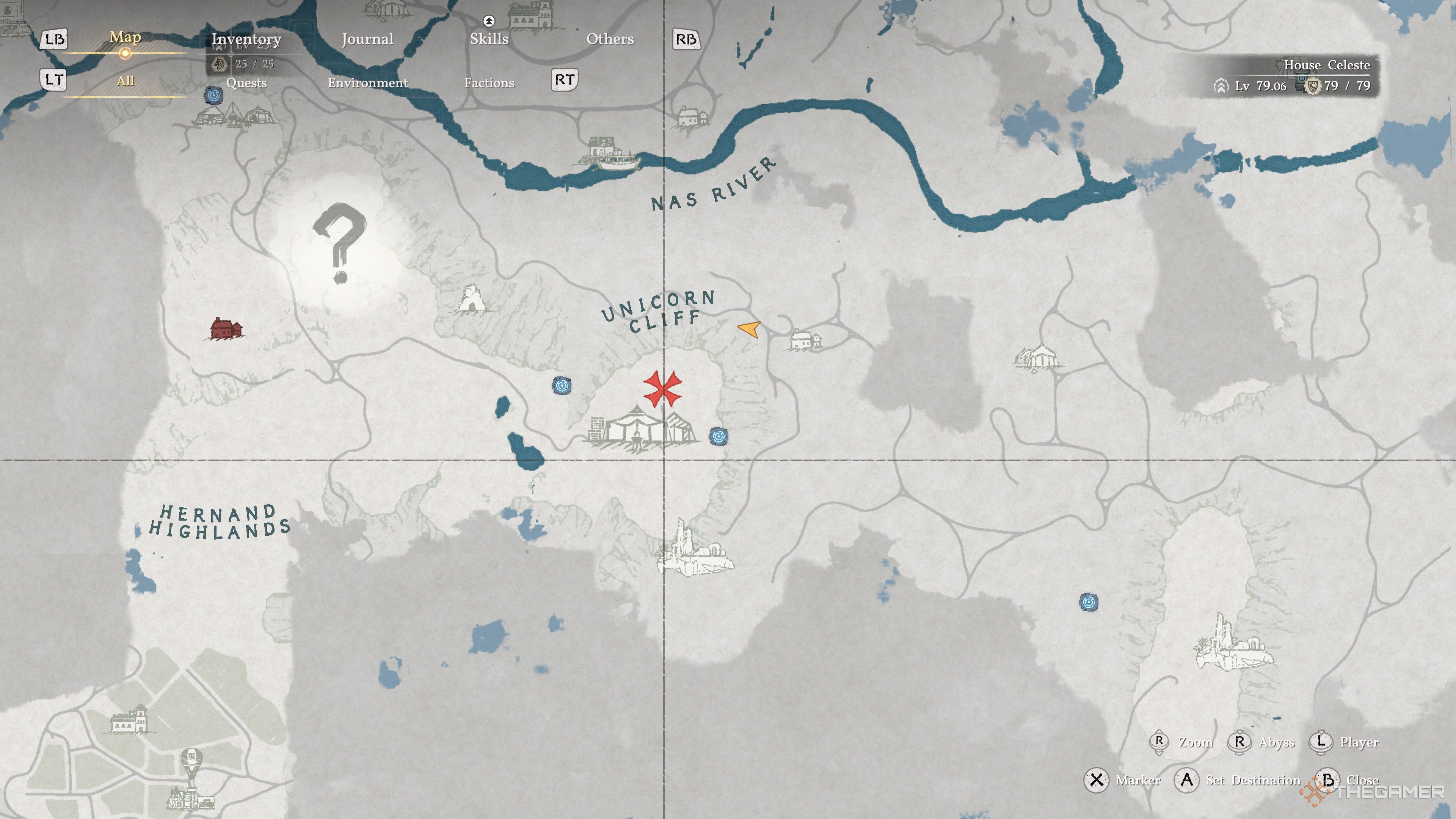 从金叶商会出发,向东北方向前往位于独角兽崖以东、纳斯河东南的较小露营地。