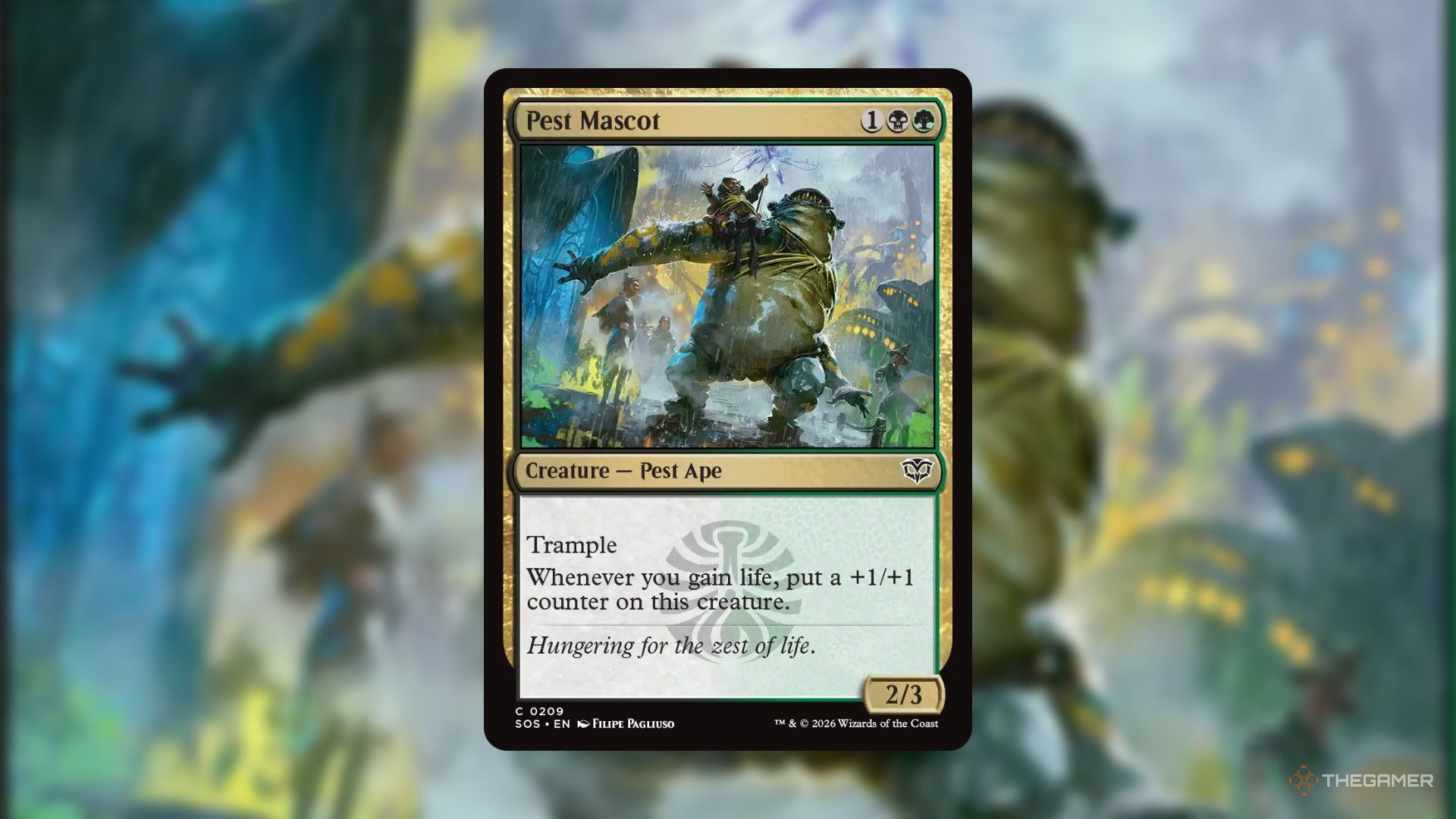 这个生物不仅是4/4飞行生物,而且还是在每个维持开始时,你创建一个1/1黑绿害虫衍生物。每当一种害虫死亡时,你就会获得1 点生命。
