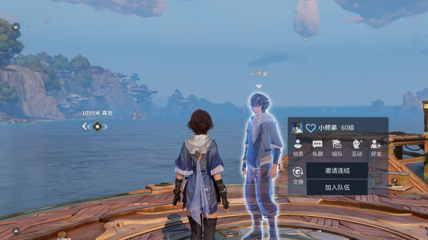 如果你想开始社交,只需要向对方发起简单的交互请求即可。对方同意后,蓝色影子就会化为实体,可以组队进行连接。组队后不仅可以一起推副本、打BOSS,还可以分享任务进度和剧情动画。 —— 即使你已经完成了剧情,你也可以陪你的新朋友充分体验。你不再需要看着你的朋友穿过地牢,而你只能在他们旁边挂电话。