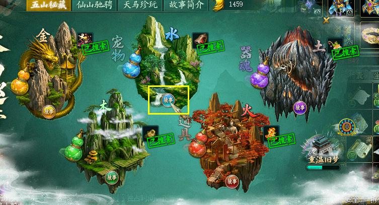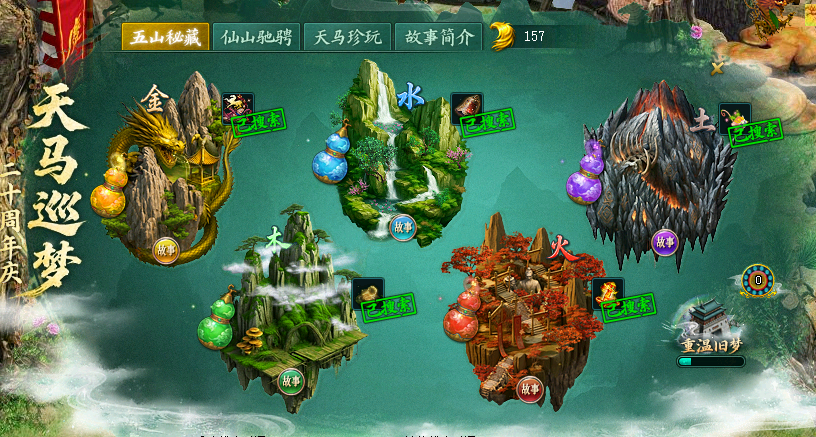 重温旧梦完成时间故事、藏宝图任务、玩仙女山、点击葫芦抽奖。这些行动将为“重温旧梦”积累进步。