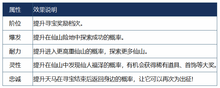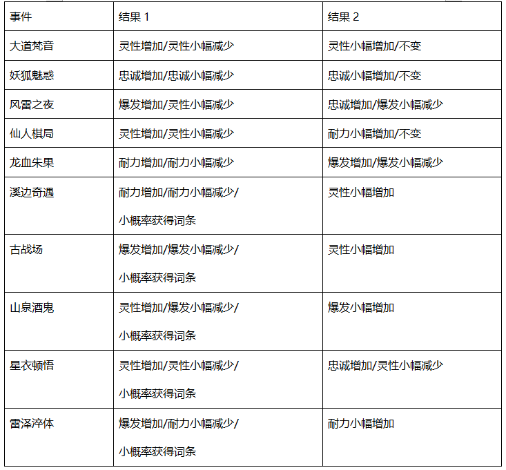 通过选择不同的事件,可以增加/降低飞马的爆发/耐力/灵性/忠诚度。